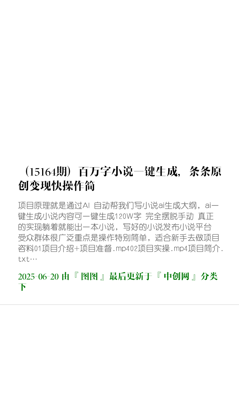 图图资源网 中创网 (15164期)百万字小说一键生成,条条原创变现快操作简单新手日入2000+ https://vip.f6sj.com/102012.html
