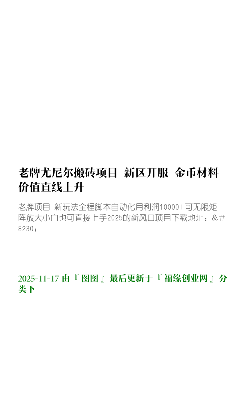图图资源网 福缘创业网 老牌尤尼尔搬砖项目 新区开服 金币材料价值直线上升 可以达到月入过万的项目 https://vip.f6sj.com/113114.html